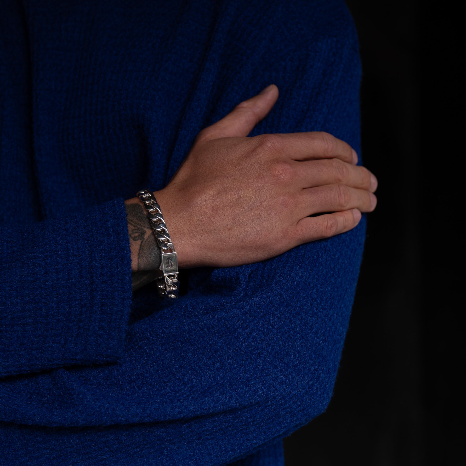 The RAWNINETY 10mm Cuban Bracelet is a refined take on a classic design. Handcrafted from solid recycled 925 sterling silver, each meticulously polished link balances strength and simplicity. With its versatile 10mm width, this bracelet offers effortless styling for everyday wear while maintaining a bold yet understated presence. Designed for those who appreciate craftsmanship, it’s a timeless addition to any collection.