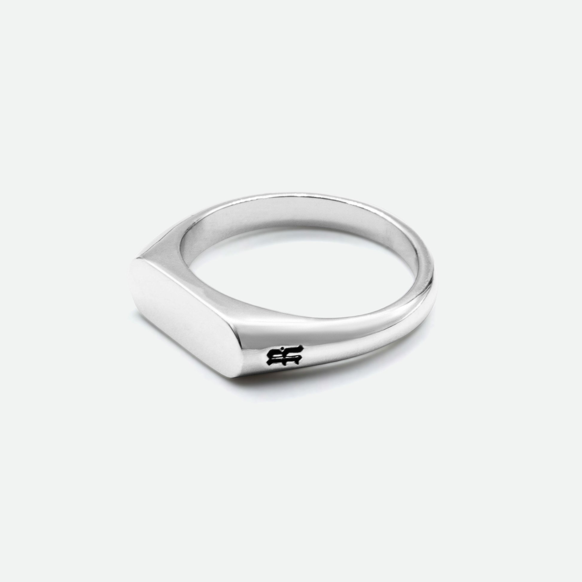 The Lenny Ring is a staple piece from our Raw Essentials Range, fusing classic and contemporary design into an everyday essential. Crafted from premium 925 sterling silver, this sleek signet ring features a rectangular face with a high-polished finish enhanced by rhodium flash plating.