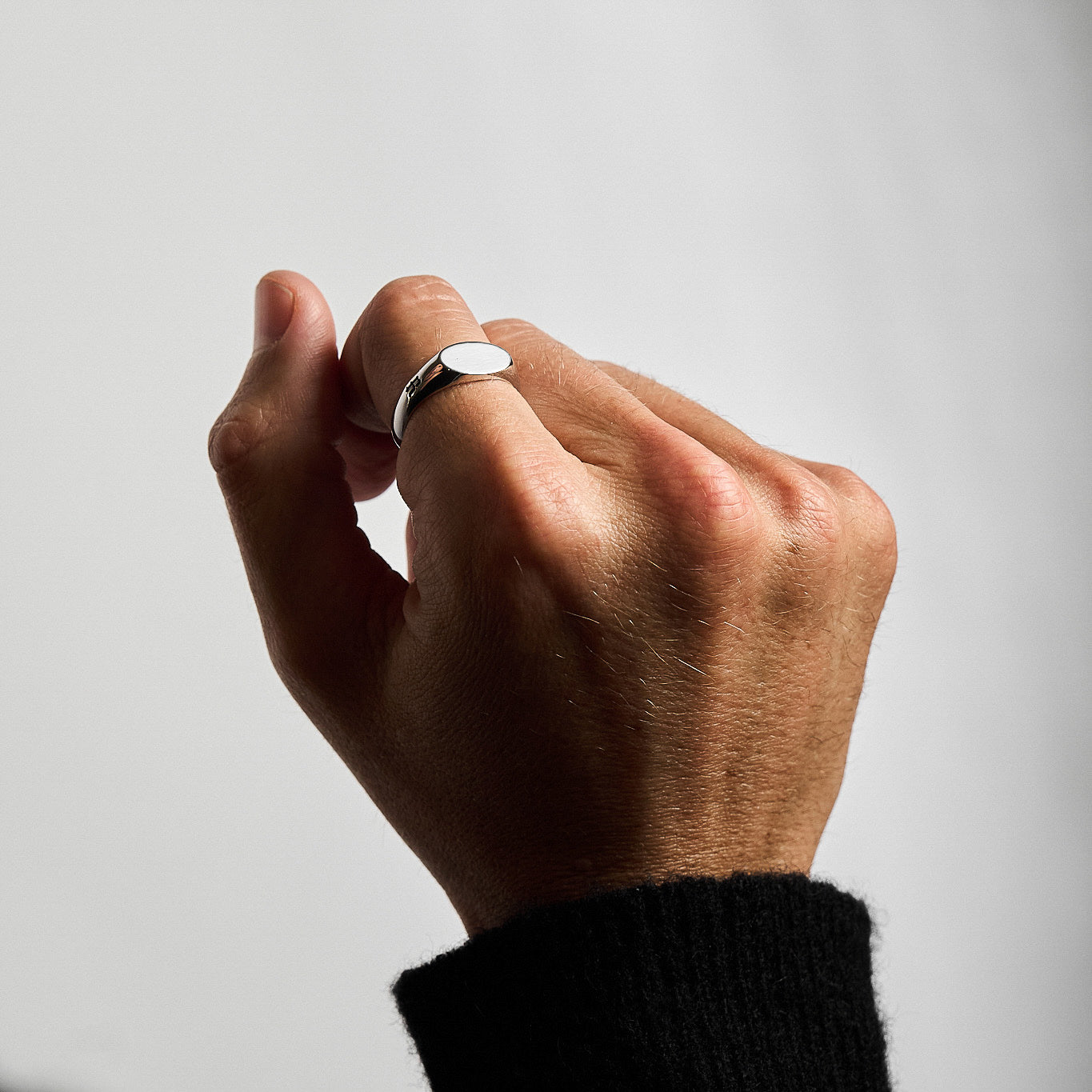 The Sonny Signet Ring is a staple piece from our Raw Essentials Range, fusing classic and modern design. Crafted from premium 925 sterling silver, this bold signet features a clean, minimalist oval face with a high-polished finish enhanced by rhodium flash plating.