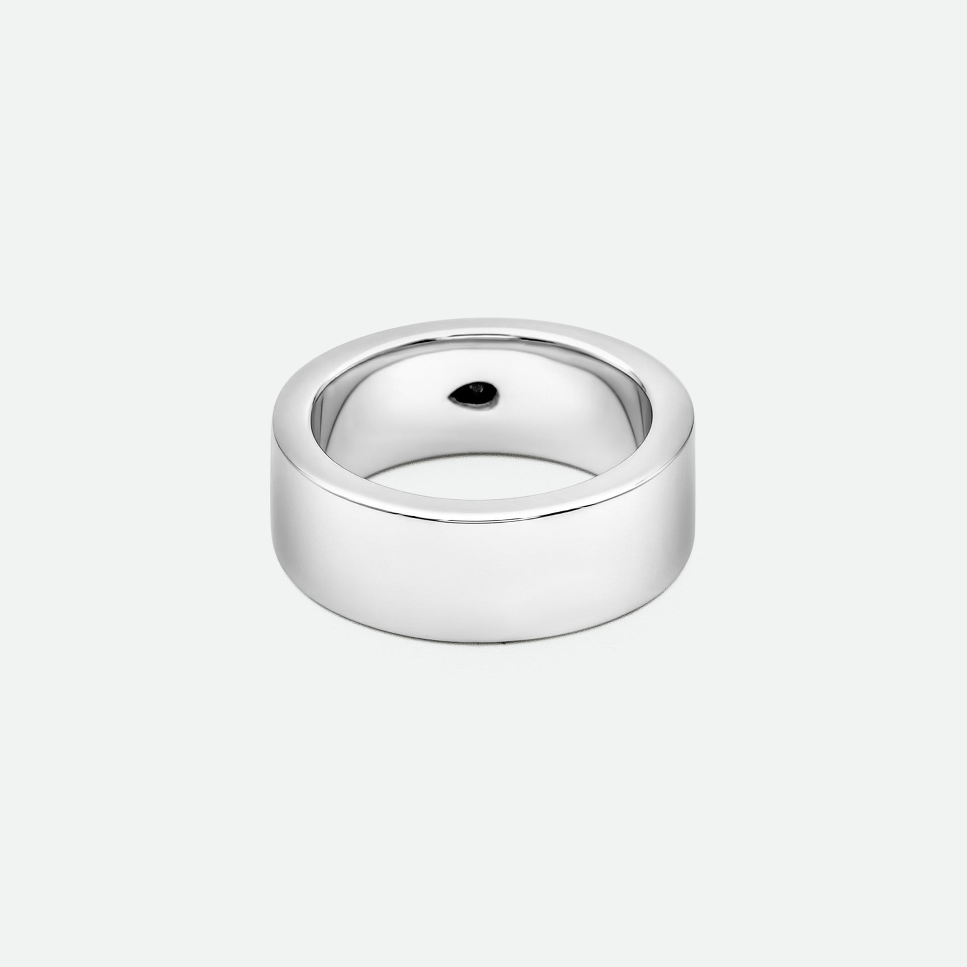 The Teardrop Ring showcases a rugged teardrop-shaped black cubic zirconia, set in a bold 9mm mid-sized band. Crafted from recycled 925 sterling silver and finished with high-polish rhodium plating, this ring combines minimalist design with lasting durability.