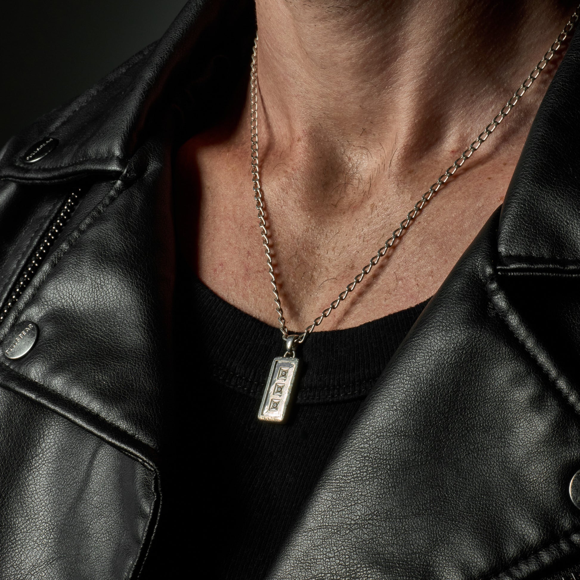 Paired with a 55cm elongated link chain, the Trilogy Pendant is designed for everyday wear — balanced in weight, intentional in form, and aligned with RAWNINETY’s raw–refined design language.