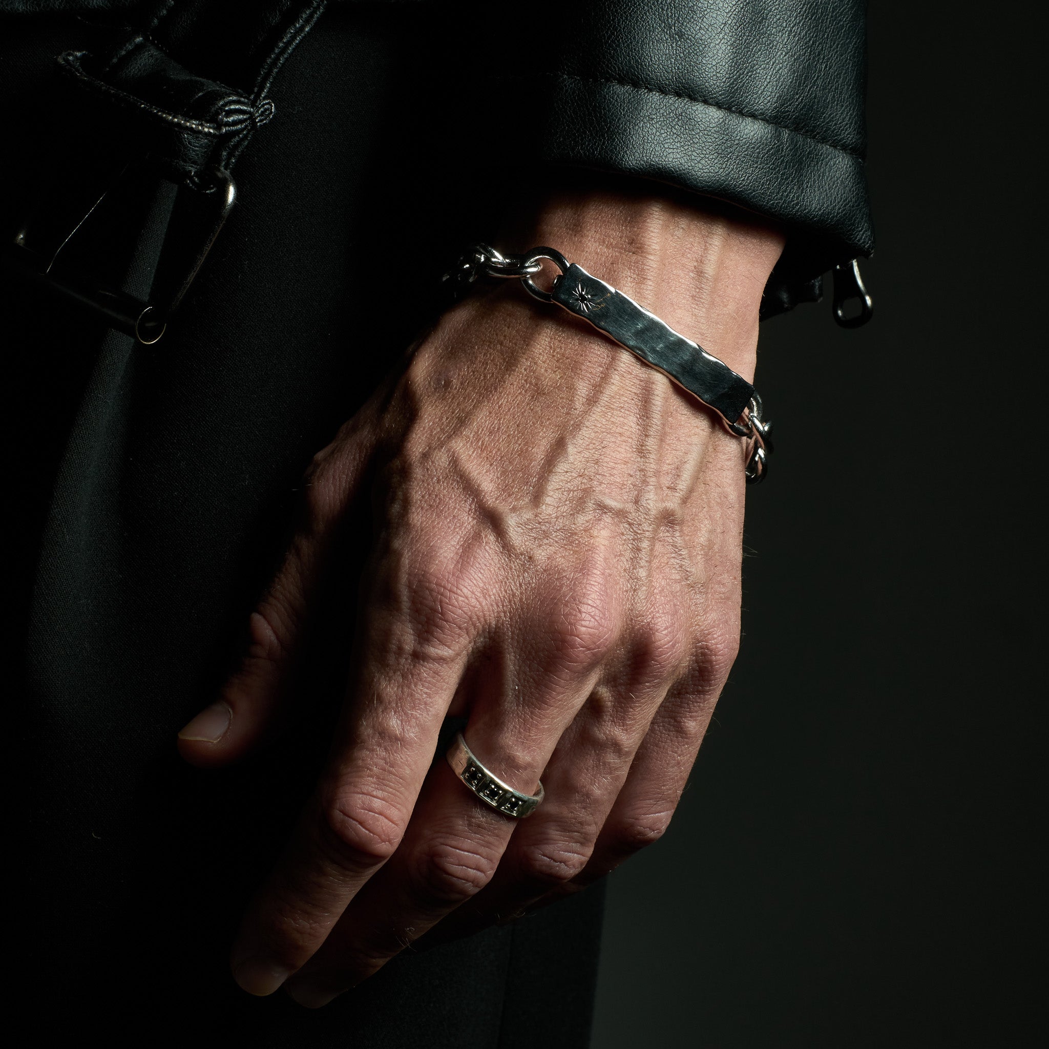 The Virgil Bracelet Chain is a men’s bracelet chain built for those who appreciate refined detail and unique minimalism. Handcrafted from solid recycled 925 sterling silver, the bracelet features a high-polished finish with subtle oxidisation and a hand-hammered texture for depth and contrast.