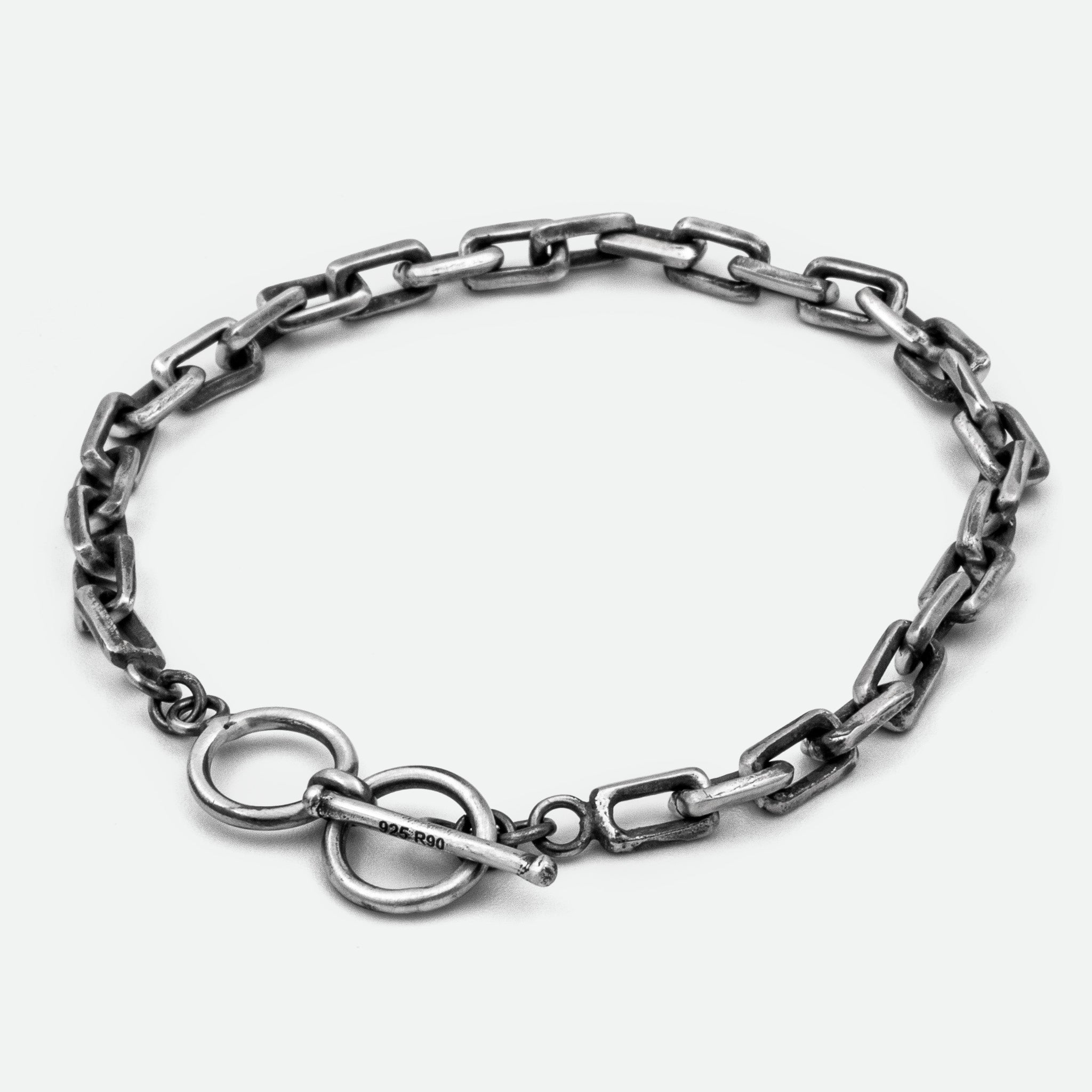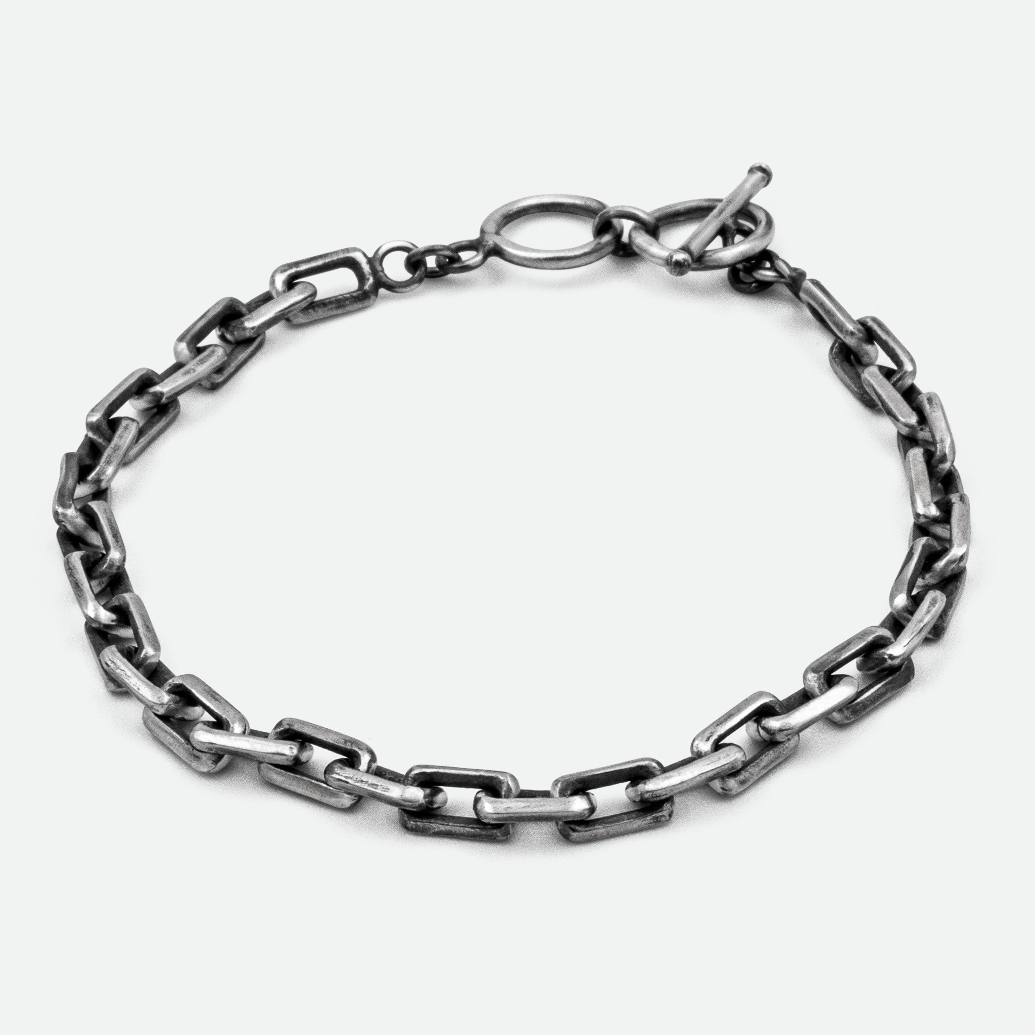 Individualistic, thoughtful and full of character; the Eugene chain features a T-Bar closure, making it easy to wear and remove with one hand. An adjustable length and aged finish to the 925 sterling silver lend a timeless charm to an otherwise rustic design.