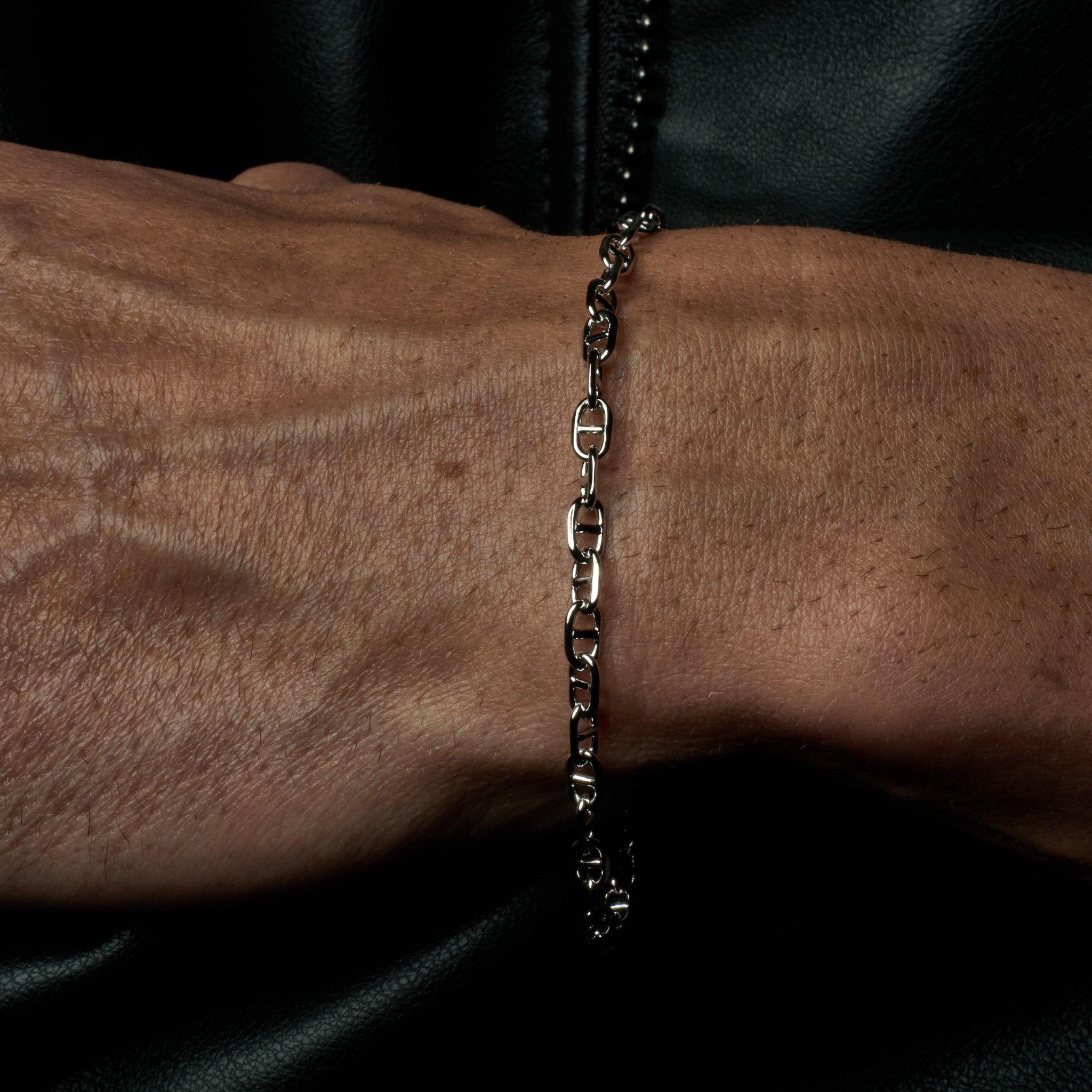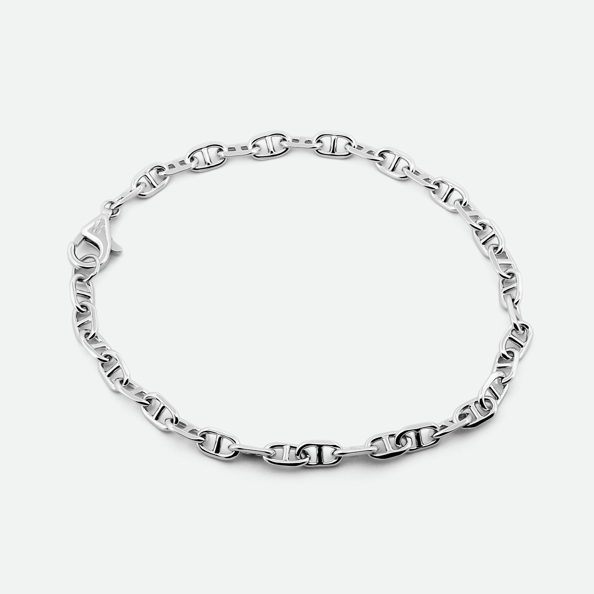 The Infinite bracelet features a timeless figure-eight chain design, crafted from recycled 925 sterling silver and finished with a durable platinum plating. Sleek and versatile, it effortlessly complements any style.