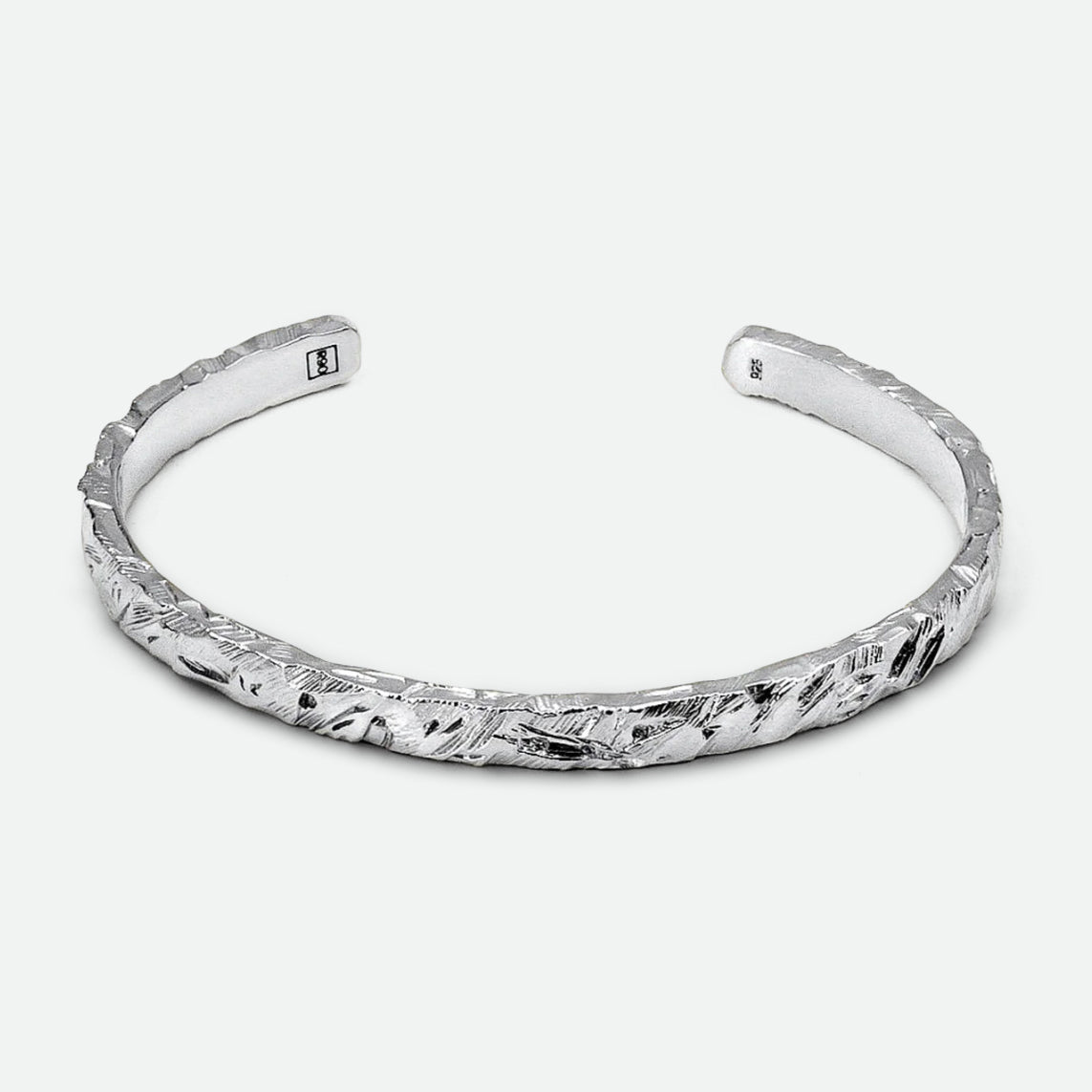 Laid back so you can kick back. An all-over polished finish and uneven texture give this lived-in cuff a vintage feel, making it easy to style and layer with additional pieces. Muted 925 sterling silver pairs easily with denim, leather and all of your wardrobe go-to’s.