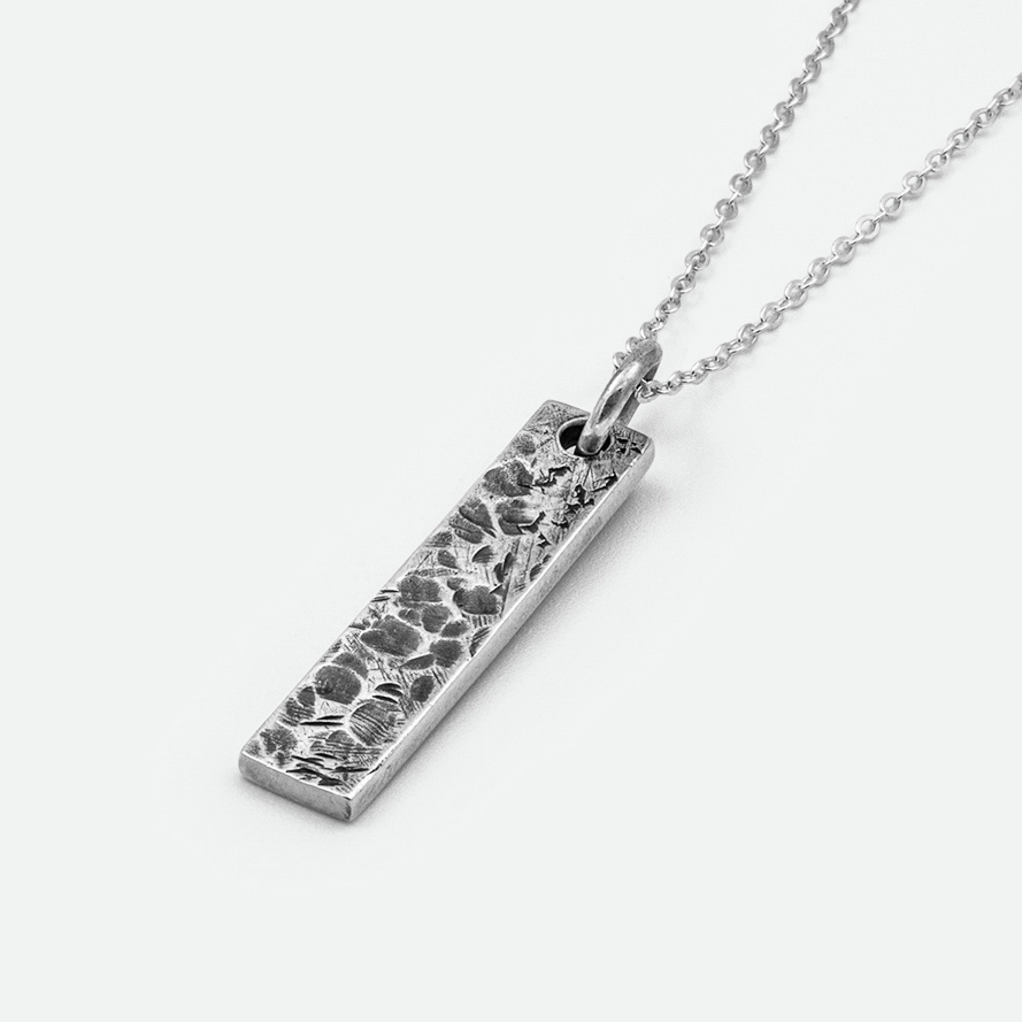 Heritage craftsmanship and hand-finished details give the Levi pendant the illusion of an artefact etched throughout the ages. The elongated pendant with polished backing sits perfectly on its own or layered with additional chains and neckwear.