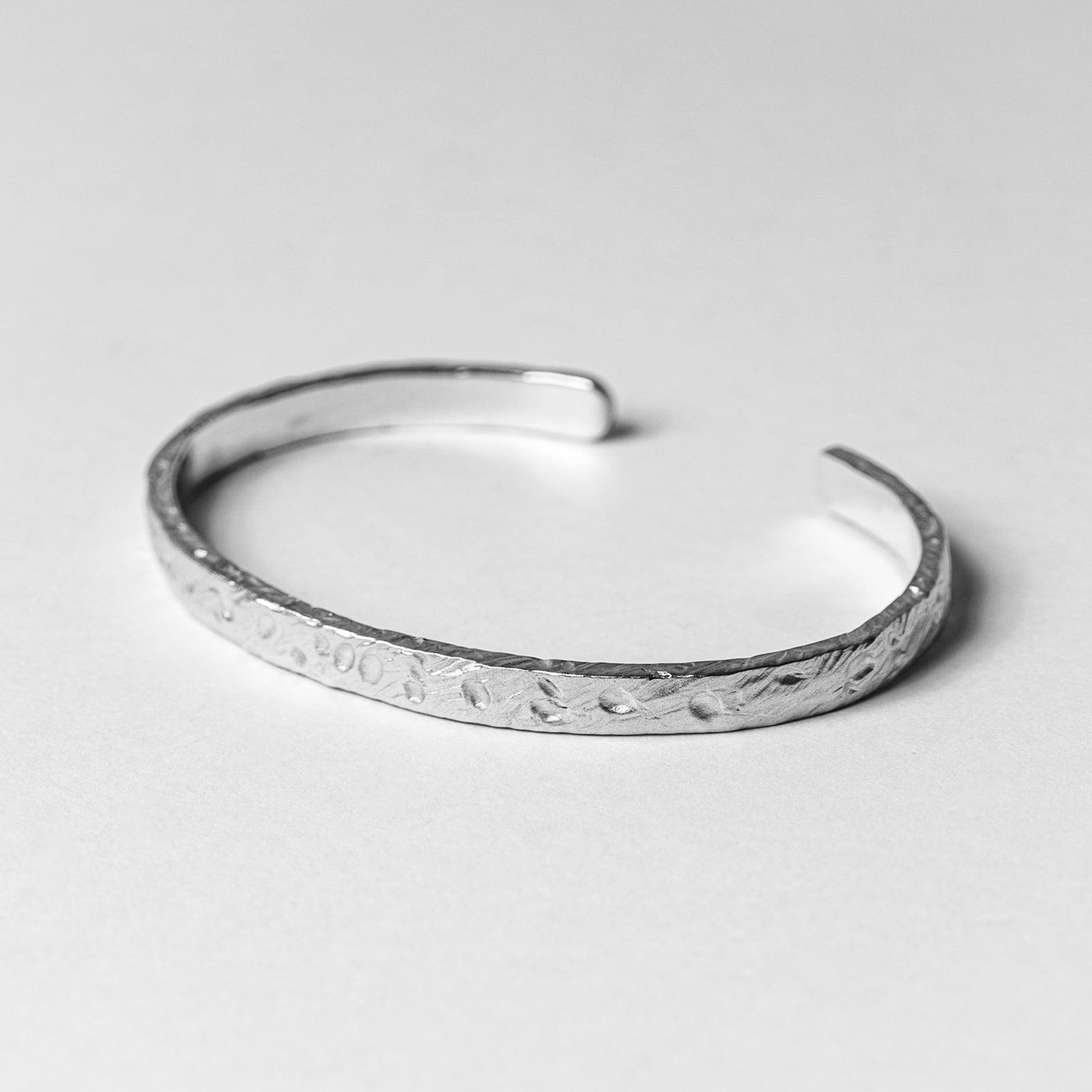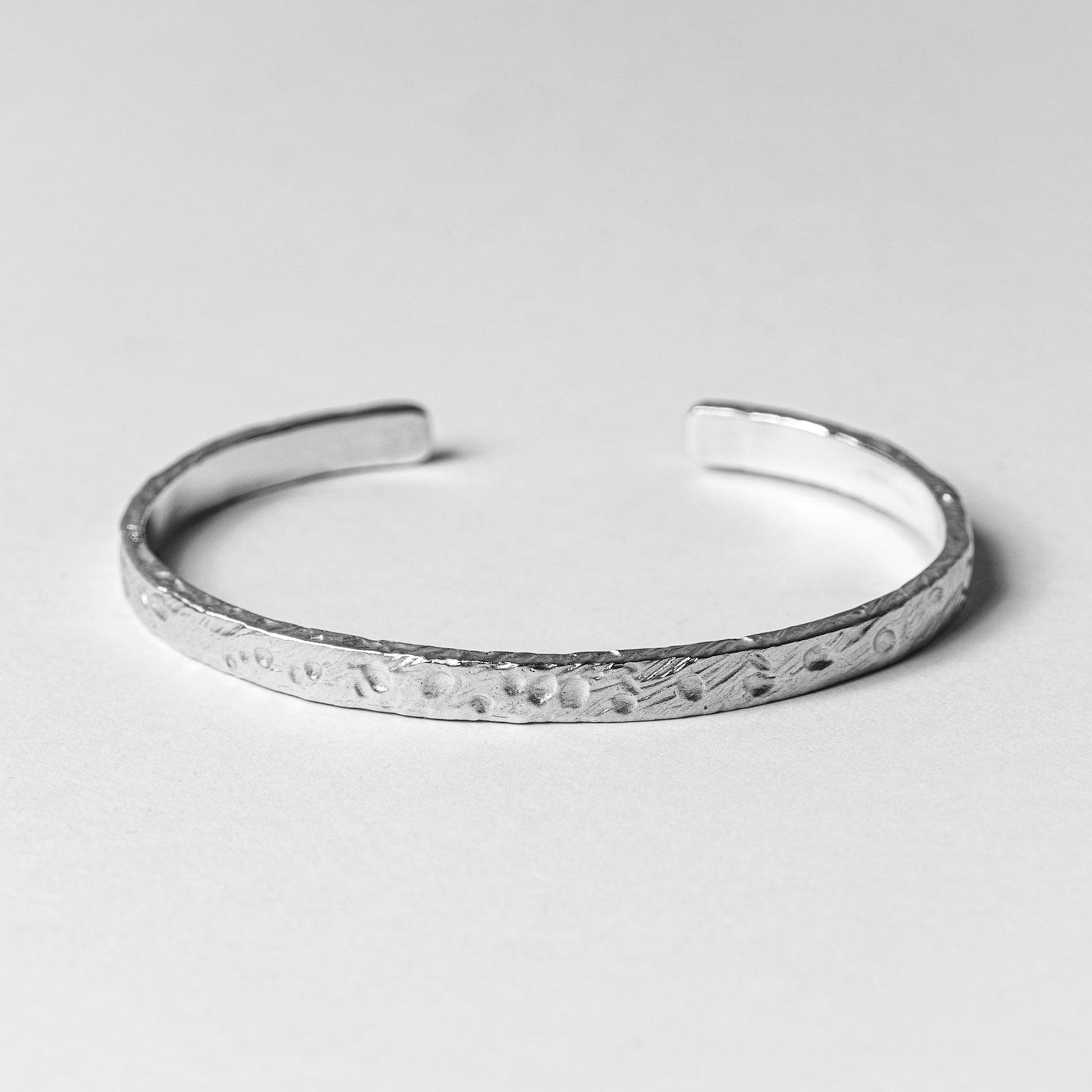An illustrious, lightweight cuff with sandblasted details for an uneven, vintage appeal. Crafted from RAWNINETY's signature 925 sterling silver with an opening that allows for easy adjustment and styling at varied points on the wrist.