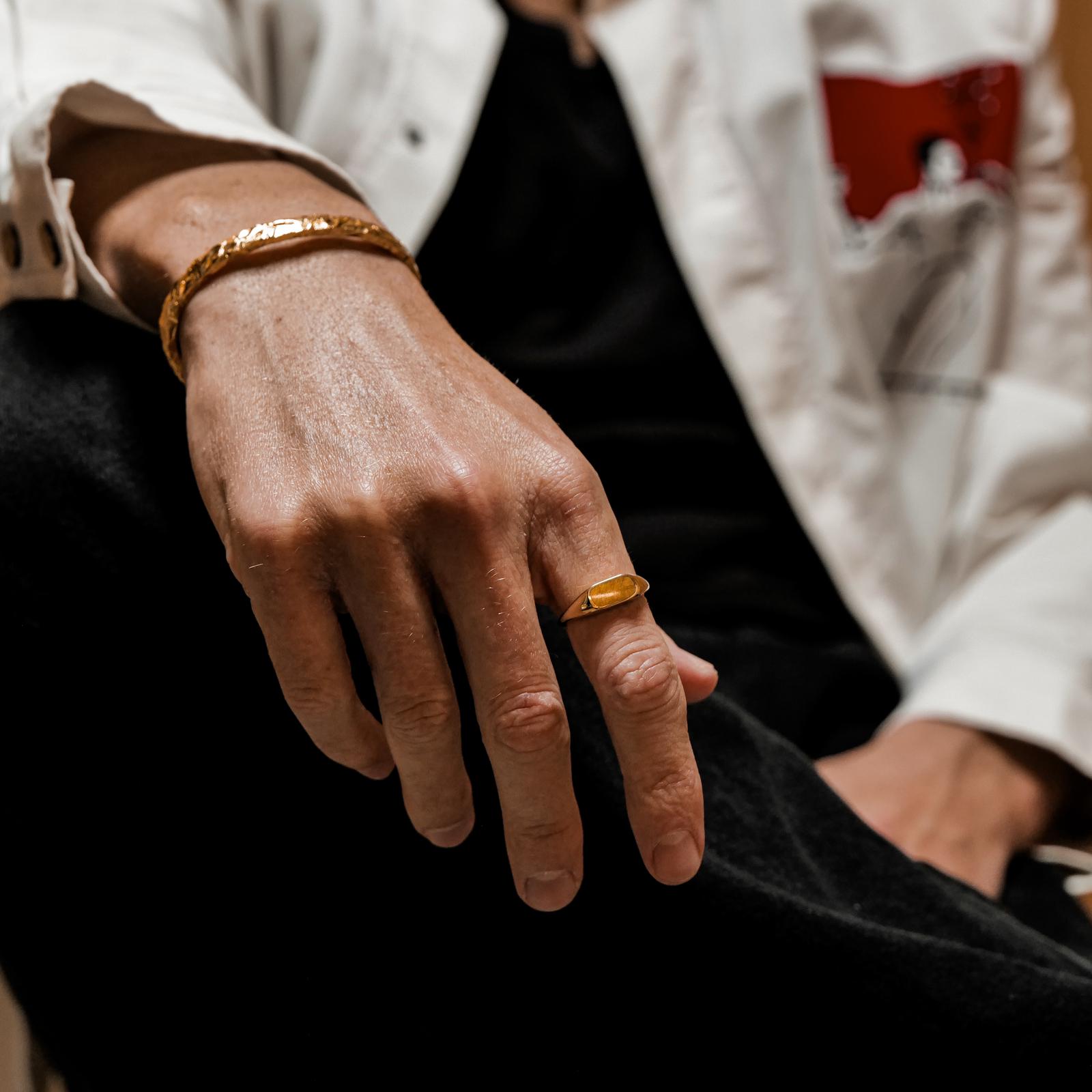 The Tiger’s Eye Ring is a refined take on the classic signet, designed for effortless styling across all seasons. Crafted from recycled 925 sterling silver and plated in 3.5-micron 18K gold vermeil, it features a tiger’s eye gemstone, known for its warm golden-brown hues and organic texture. The minimalist finish enhances its natural depth, making it an understated yet bold piece. Wear it solo or pair it with the matching Tiger’s Eye Pendant Necklace for a complete look.